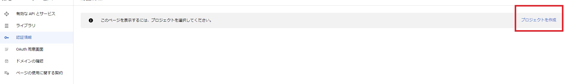 次に画面右の方の【プロジェクトを作成】をクリックします。