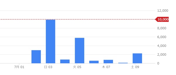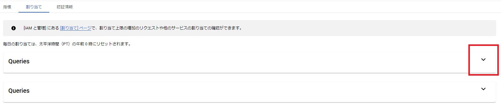 ここで現在のキーの使用量が表示されます。『10,000』が上限でこれをオーバーすることはできません。以上でAPIキーの割り当て確認方法の説明は終わりです。